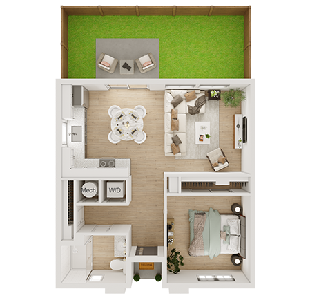 1-Bed 1.5-Bath 818 SQ FT